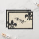 Esses convites de festa de Halloween em estilo gótico com lírio florido apresentam uma borda preta com símbolos de lírio florido emoldurados em preto cromado nos cantos. A frente lê "Festa de Voodoo" em uma fonte gótica elaborada. Personalize com as informações da sua festa de Voodoo no verso usando o modelo. Clique em "personalizar" para alterar a fonte e a posição do texto.