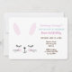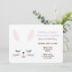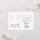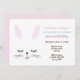 Convite de coelho em um esquema de cores rosa e branco, apresentando uma ilustração de um coelho fofo e um fundo de bolinhas para o verso. Perfeito para um primeiro aniversário, uma festa de aniversário de criança ou festa de Páscoa.
