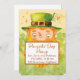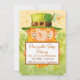Um convite de festa do Dia de São Patrício alegre e fofo com um leprechaun adorável segurando um letreiro festivo, cercado por trevos verdes macios e texturas de aquarela quentes. Perfeito para festas temáticas irlandesas, celebrações familiares, eventos de bar ou reuniões do Dia de São Patrício. Este design encantador adiciona um toque divertido e sortudo a qualquer celebração.