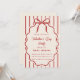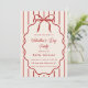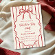 Convide seus convidados com estilo com este elegante convite de festa do Dia dos Namorados, apresentando uma ilustração de laço vermelho chique, listras modernas e um layout lindamente emoldurado. Perfeito para encontros românticos, festas da Galentine, eventos de casais ou celebrações de fevereiro. Totalmente personalizável - edite o nome do anfitrião, data, local e RSVP para combinar com o seu evento. Um convite sofisticado e festivo que define o tom perfeito para uma celebração inesquecível do Dia dos Namorados.