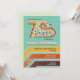 Convite de Festa dos Anos 70 com uma tipografia retrô de 'Festa dos Anos 70'. Os designs incluem elementos inspirados nos anos setenta, como azul, laranja, amarelo mostarda, vermelho escuro e marrom, listras e textura vintage. Inclui um modelo para personalização.
