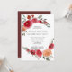 Convite de aniversário floral aquarela rústica boho elegante com rosas e folhagens em cores vivas e vibrantes em pêssego, rosa e burgundy. Fundo marsala burgundy. Pode ser personalizado.