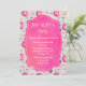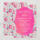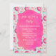 Um convite de festa genérico doce e delicioso para qualquer ocasião. O fundo do padrão é uma ilustração apetitosa com donuts cor-de-rosa glaceados com confeitos. Cupcakes de dar água na boca em rosa e azul com rosetas e morangos por cima. Alguns macarons de pastelaria francesa rosa pastel e pequenos botões de doce rosa também decoram este padrão cheio de guloseimas. Uma moldura sofisticada cor-de-rosa choque no centro tem todos os detalhes da sua festa em escrita legível. Personalize com todos os detalhes da sua festa.
