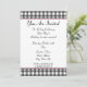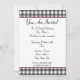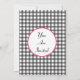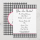Um simples convite com um desenho gingham cinza carvão na parte superior e inferior da frente. Corte rosa e fonte negrito de fita preta. Personalize com detalhes da sua ocasião. O lado oposto apresenta um design sólido com uma forma circular no meio, enquadrando o texto.