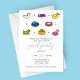 Este Convite de Festa na Piscina com Ícone de Linha de Balsa de Piscina apresenta um design divertido e alegre que é perfeito para uma celebração de verão. A ilustração de oito bóias coloridas, incluindo um donut, dragão e unicórnio, adiciona um toque caprichoso ao convite. A caligrafia moderna e a tipografia fácil de ler tornam fácil transmitir os detalhes importantes da festa, como data, hora e local.