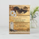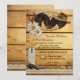 Um convite romântico de festa pós-casamento com dois cavalos em um painel de madeira com ferraduras, renda e uma bota de cowboy. Ótimo para um casamento com recepção apenas ou celebração após o casamento com tema western ou para amantes de cavalos.