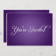 Este convite de festa roxo moderno é perfeito para qualquer ocasião. Ele apresenta um gradiente radial preto na frente com uma fonte escrita à mão que diz "Você está convidado". Perfeito para eventos corporativos ou festas de cocktails! Todo o texto na parte de trás é totalmente personalizável. Adicione os detalhes da sua festa!