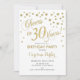 aniversário de 30 anos convite de festas para mulheres ou homens. Cartão de convite elegante com prata brilhante e branco. Possui fonte de script e confetti. Saúde para 30 anos! Perfeito para uma festa de glam.