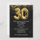 Balões mylares Dourados com estrelas confetti em preto para convite para aniversário de 30 anos. O texto pode ser editado para uma festa de 30.