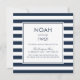 Convite de festas de inspiração moderna e náutica, com marinho e faixas brancas. Este convite de festas simples e clássico é perfeito para qualquer tema de aniversário. Outras cores estão disponíveis.