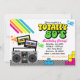 É a anos 80, TOTALMENTE. Convide amigos para a sua próxima festa de anos 80 com este convite totalmente incrível. Possui uma caixa de expansão, fitas cassetes e cores neon 80s.
