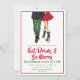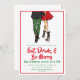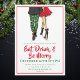 Levante um copo para o feriado com este convite de festas de cocktail de Natal divertido e festivo! Apresentando um casal na moda vestido para impressionar — a mulher com um vestido vermelho-chic com saltos pretos e o homem com Papais noeis-impressão tocantes com um blazer preto segurando uma cerveja — este design dá o tom perfeito para uma noite de alegria. Personalize com seus detalhes de festa para uma reunião de feriados que seus convidados não esquecerão!