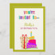 Torne o seu primeiro aniversário inesquecível com este convite de aniversário colorido! Apresentando um bolo de aniversário divertido, uma caixa de presentes de bolinhas e um texto multicolorido "você é convidado", este convite é perfeito para uma celebração animada e festiva de primeiros aniversarios. O retorno de correspondência inclui espaço para data, hora, local e detalhes de RSVP — tudo o que você precisa para que a festa seja iniciada!