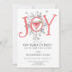 Um único e singular convite de festas ilustrado pela tipografia de JOY de Ano Novo. Um estilo único para a sua celebração. Tipo de alegria Quirky, pinheiros e coquetel.