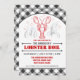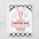 Fervura da lagosta/convite do assar com um fundo, uma lagosta, uns moluscos, umas bolhas, e uma alga do teste padrão do guingão. Fácil personalizar com seu próprio texto. Ilustração original pelo pj_design. Verifique por favor minha loja para ver se há mais como esta.