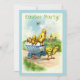 Estes pintinhos adoráveis de uma carroça estão aqui para desejar uma Felz pascoa deste cartão postal de Páscoa colorida reimpresso em uma convite de festas de Páscoa.