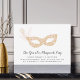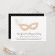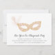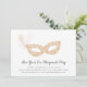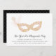 Convites elegantes de bola de mascarada para a Véspera de Ano Novo ou qualquer ocasião de festa apresentam uma máscara de ornamentado em cor-de-rosa e ouro, enfeitiçados com uma pena. Personalize com os detalhes do seu partido abaixo em um script de caligrafia negra e em letra de bloco.