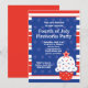 Este convite de festas vermelho, branco e azul de 4 de julho apresenta estrelas e listras e um cupcake divertido. É a forma perfeita de convidar a família e os amigos para a próxima festa de 4 de julho. Alguns elementos deste cartão © Goodness e Fun