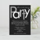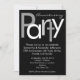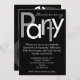 Convite de festas festivo do aniversário moderno, personalize a qualquer ano atrás. Estilos de blocos divertidos e alegres, com letras em negrito alto contraste, preto e branco, em fundo preto. O design moderno elegante é perfeito para qualquer convites de festas. Exemplo mostra 25, mas use qualquer celebração de ano! Personalize on-line com os detalhes do evento.