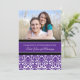 Carta personalizada de convite de festas de aniversário de casamento de 1rua em elegante roxo escuro, preto e branco, cor damasco floral clássica, delicada e moderna. Personalizável com os detalhes do seu partido e a sua própria fotografia.