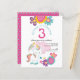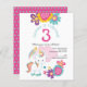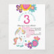 Um alternativo de 4,5 pol x 5,6 pol com preço inferior. Disponível em um STOCK DE CARTÃO SEMI-GLOSS 110 lb, que é a opção padrão (mais espesso para convites), OU um STOCK de PAPEL THINNER FINISH 80 lb FINISH (ideal para gabinetes). Os envelopes são um extra opcional e são ligeiramente maiores que o tamanho da placa. Um design de unicórnio fofo para o aniversário de 3 anos do Partido de sua garotinha, junto com florais simplistas coloridos em tons de rosa, cor-de-rosa e amarelo. Todo o texto pode ser facilmente personalizado para seus próprios detalhes. No verso, o fundo é cor-de-rosa para coordenar com o rosa na frente com um padrão de estrelas lacrimogêneas. Você pode fazer outras alterações se desejar por meio da opção personalizar mais, para digitar estilos e cores, e também as cores de fundo.