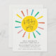 Um convite de festas aniversário de criança de diversão orçamentária com sol arco-íris e roteiro moderno. Clique no botão editar para personalizar este design com seus detalhes.