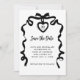 Estes Cartões salve a data de aniversário têm um arco preto e uma borda de fita em um fundo branco. Você pode personalizar com seu número de aniversário, nome e data.