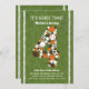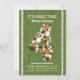 Convite de festas de aniversário do 4º aniversário do esporte para o seu filho estrela! O número 4 é feito de bolas de futebol, bolas de futebol, bolas de basquete e bolas de golfe sobre fundo de grama verde. Design continua atrás parecendo uma camisa com nome e idade de aniversário. Seus amigos e família terão uma bola nesta festa de aniversário.
