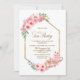 Celebre seu aniversário e convide seus amigos e entes queridos para uma festa de chá com este elegante convite de aniversário floral cor-de-rosa com estrutura geométrica dourada. Você pode incluir qualquer idade no modelo de convite.