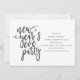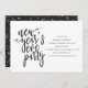 Este simples convite para festas de Ano Novo apresenta as palavras "festas de véspera de ano novo" em um moderno roteiro de carvão em fundo branco. Os detalhes do seu partido sentam-se à direita na mesma cor de carvão. O fundo é um padrão de cinzas prateada e escura. Mantenha o plano de fundo como está ou usando a opção personalizá-lo, você pode excluí-lo e escolher uma cor na paleta ou usar seu próprio número hexadecimal.