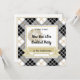 Este convite de festas de Ano Novo em formato quadrado clássico funcionaria bem para festas privadas ou corporativas ou outros eventos de feriados. Texto formatado na frente e no verso para fácil edição com seus próprios detalhes. Impresso em um design de fundo de xadrez dourado, preto e branco com áreas de quadros de texto douradas, fogos de artifício e acentos de flauta de champanhe.