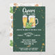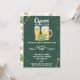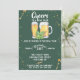 Copos, caneca, saltos e trigo pintados em fundo verde de caça, Convite de festas de Ano Novo.