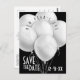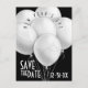 Este elegante convite para Salvar a Data adicionará estilo à celebração do Ano Novo. O design apresenta balões brancos sobre fundo preto e o texto "Feliz ano novo" junto com "Salvar a Data" e o ano "20xx" para mudar para o ano correto. No verso, ele contém detalhes sobre o seu partido que você pode personalizar. Projetado pelo famoso artista mundial Tim Coffey.