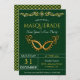 Convide seus hóspedes com este elegante tema ouro, convite de festas de Ano Novo, com máscara de mascarada de ouro com tipografia moderna, sobre um fundo verde. Basta adicionar os detalhes do seu evento neste modelo fácil de usar para torná-lo um convite de tipo único. Sacudir a carta para revelar um lindo padrão de papel quatrefoil verde e ouro na parte traseira da carta.