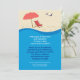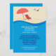 Convite de festas de aposentadoria e colorido. Design ideal para um amante de praia ou uma pessoa que ama o exterior e o oceano. Excelente de fazer uma reunião festiva de aposentadoria. Apresenta uma cadeira de praia e um guarda-chuva de praia num cenário de verão.