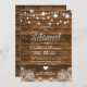 design bonito e rústico com cordas de luzes brilhantes sobre madeira e uma borda inferior de renda.