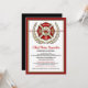 Maltês clássico, design e linha vermelha fina para estes convites de festas de aposentadoria de bombeiros.