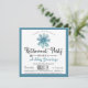 Convite de festas de aposentadoria bonito, colorido e moderno com flor de água azul pastel. Convidado para comemoração formal de aposentadoria de um escritório corporativo elegante, homem ou mulher. Excelente ano para festas de primavera, verão, outono ou inverno.