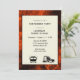Convite de aposentação único para um bombeiro ou chefe de bombeiros. Design tem um capacete de fogo com o número personalizável para o motor ou a estação. O fundo é chamas e uma silhueta de um caminhão de bombeiros. Fácil de personalizar com os detalhes da sua festa.