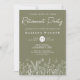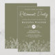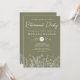Convites de festas de aposentadoria de flores verdes sábias com flores em uma linha moderna de design. Personalize nomes, datas e informações.