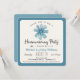Convite de festas bonito, colorido e moderno para o lar com flor de água azul pastel; design floral. Convidado quadrado com cantos arredondados e fontes do estilo de aquarela retrorativa. Excelente ano redondo para primavera, verão, outono ou inverno novo lar, casa, festas de inauguração.