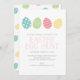 Convide seus amigos, família e vizinhos para uma caçada divertida de ovos da Páscoa com este doce convite. Apresenta quatro ovos ilustrados de Páscoa. Personalize todos os detalhes da festa.