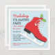 Um skate vermelho brilhante, decorado com um som festivo, é colocado sobre um fundo de neve de azul gelado, e convida a família e amigos a um sorvete divertido Holiday patinando sobre a celebração sazonal!