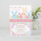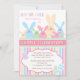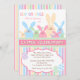 Tenha uma celebração de Páscoa com este adorável convite de coelhinho! Apresenta coelhos pastéis bonitos com ovos de Páscoa num fundo listrado.