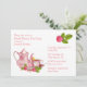 convite de festas de chá de chá de panela bonito, feito em um estoque de cartão branco, com gráficos adoráveis de um conjunto de chá de bolinhas rosa e branco, com cupcake e framboesas. A parte de trás do convite é feita em rosa com bolinhas brancas. Personalize o texto cor-de-rosa para o seu próximo chá. Também adorável por chás de fraldas.