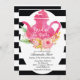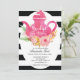 Com um bule de chá, design floral de aquarela, preto e branco listrado, é um convite perfeito para uma festa de chá chá de panela.