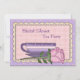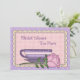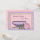 Convite de festas de chá de chá de panela doce feito em um bonito roxo e cor-de-rosa com uma xícara de chá roxa e uma rosa rosa decorando o fundo xadrez rosa. Texto na frente e no fundo cor-de-rosa sólido está pronto para personalizar para ler o que você quiser. Adorável convite para a noiva ser amada.