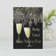 Uma ilustração gráfica dos óculos de champanhe e fogos de artifício da artista/designer Charmaine Paulson no Convite de Véspera de Ano Novo. O convite tem modelos de texto para a sua personalização.