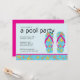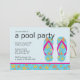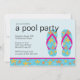 Comece a festa de piscina com o Convite de festas de PISCINA de chinelos florais de turquesa. Convite perfeito para uma festa de natação adolescente. Apenas personalize com suas informações e você está pronto para ir! Itens correspondentes, incluindo selos de postagem de aniversário, adesivos de favoritos, cartões de agradecimento e obrigado que você também está disponível em nosso compro. www.celebrateitinvites.com ©Babystar Designs