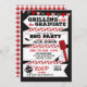 Grelha com o Formando. Comemore o formando da sua vida com este convite para a graduação do churrasco. Verificado design vermelho e preto com ilustrações bonitas de churrasco. Personalize com o seu texto.